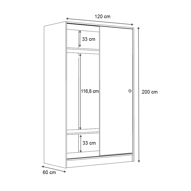 Ντουλάπα ρούχων Regio Megapap δίφυλλη συρόμενη χρώμα καρυδί 120x60x200εκ.