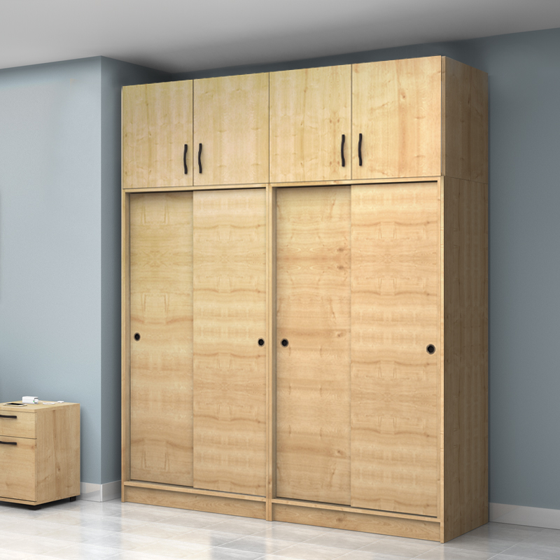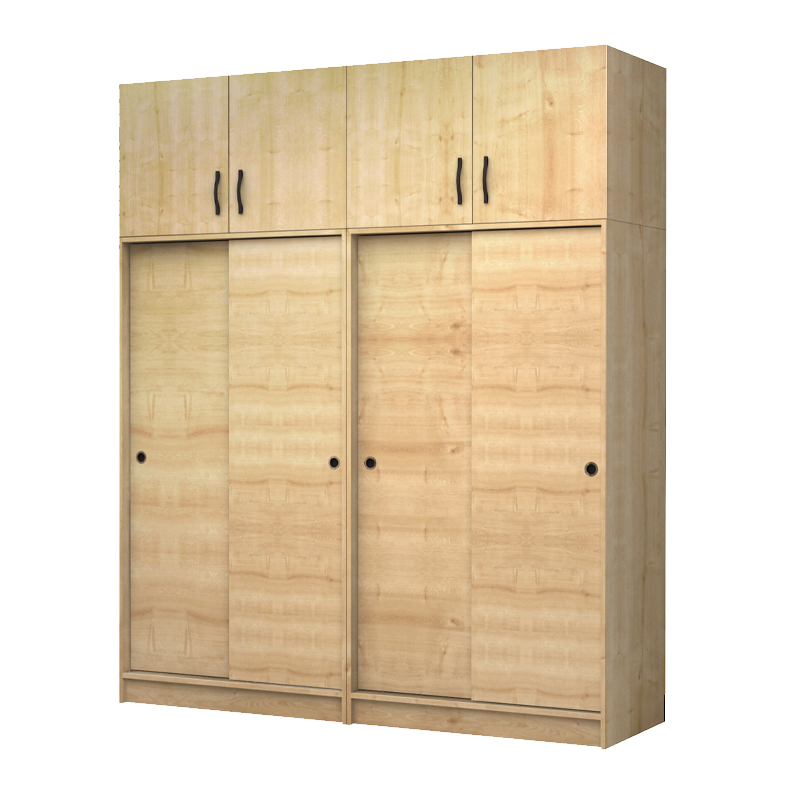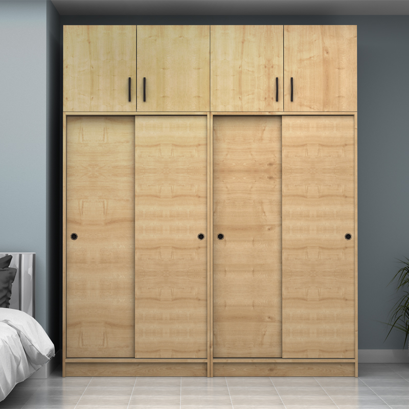 Ντουλάπα ρούχων Regio Megapap τετράφυλλη συρόμενη με πατάρι χρώμα φυσικό οξιάς 200x60x240εκ.