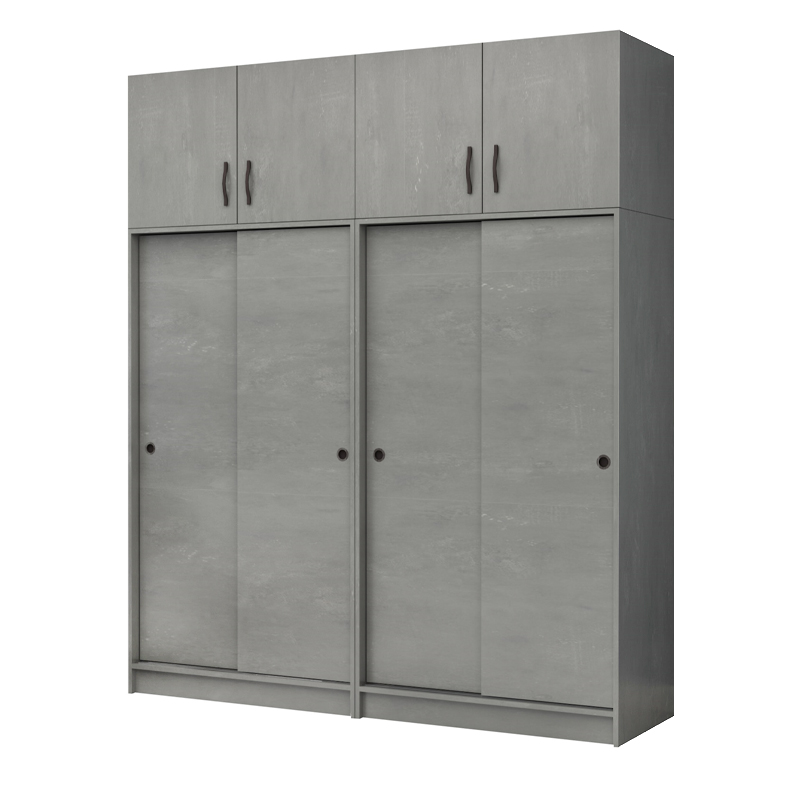 Ντουλάπα ρούχων Regio Megapap τετράφυλλη συρόμενη με πατάρι χρώμα γκρι σκυροδέματος 200x60x240εκ.