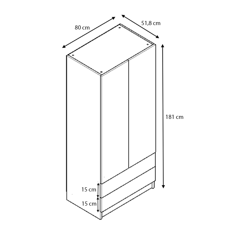 Ντουλάπα ρούχων Ricardo Megapap δίφυλλη χρώμα φυσικό οξιάς 80×51,8×181εκ.
