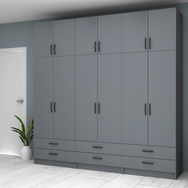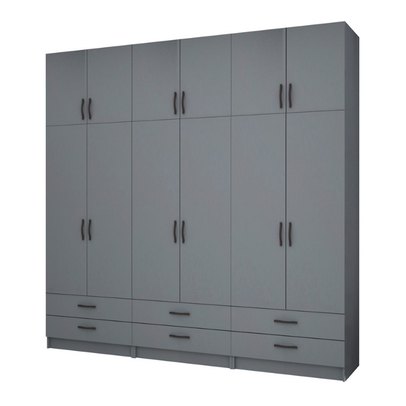 Ντουλάπα ρούχων Ricardo Megapap εξάφυλλη με πατάρι και συρτάρια χρώμα ανθρακί 240x51,8x240εκ. Ντουλάπα ρούχων Ricardo Megapa...