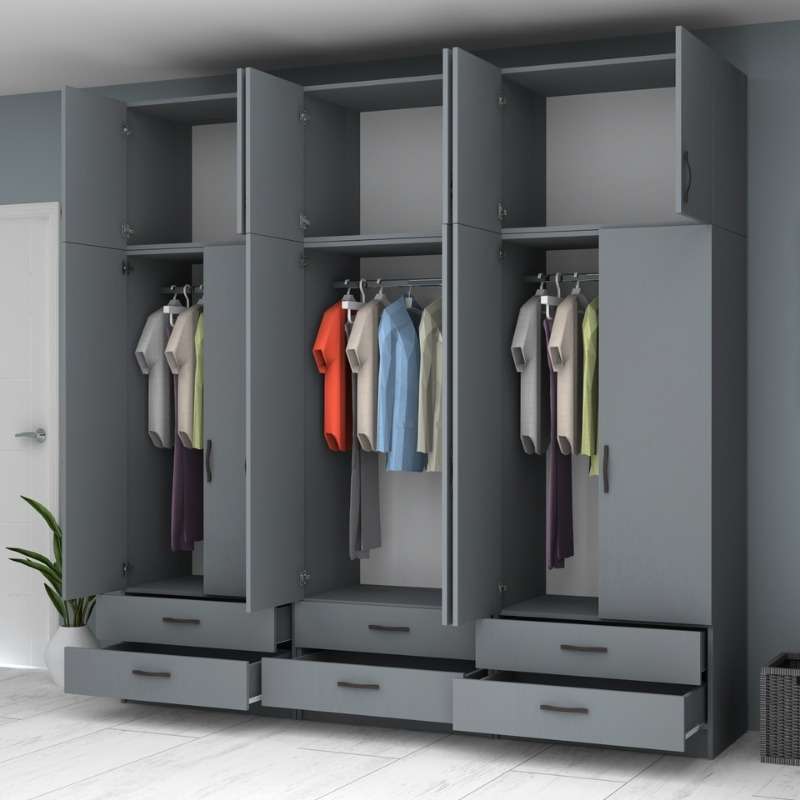 Ντουλάπα ρούχων Ricardo Megapap εξάφυλλη με πατάρι και συρτάρια χρώμα ανθρακί 240×51,8×240εκ.