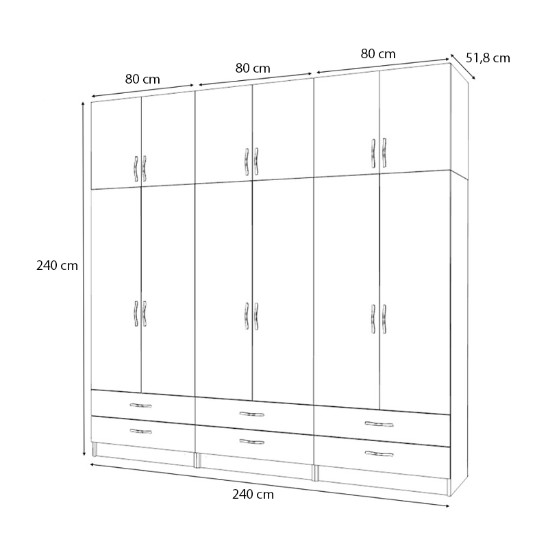 • Διαστάσεις ντουλάπας: Μήκος 240 x Βάθος 51,8 x Ύψος 181 εκ.