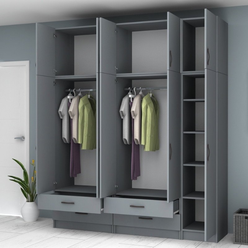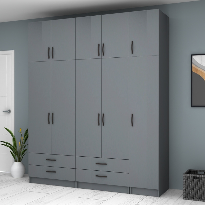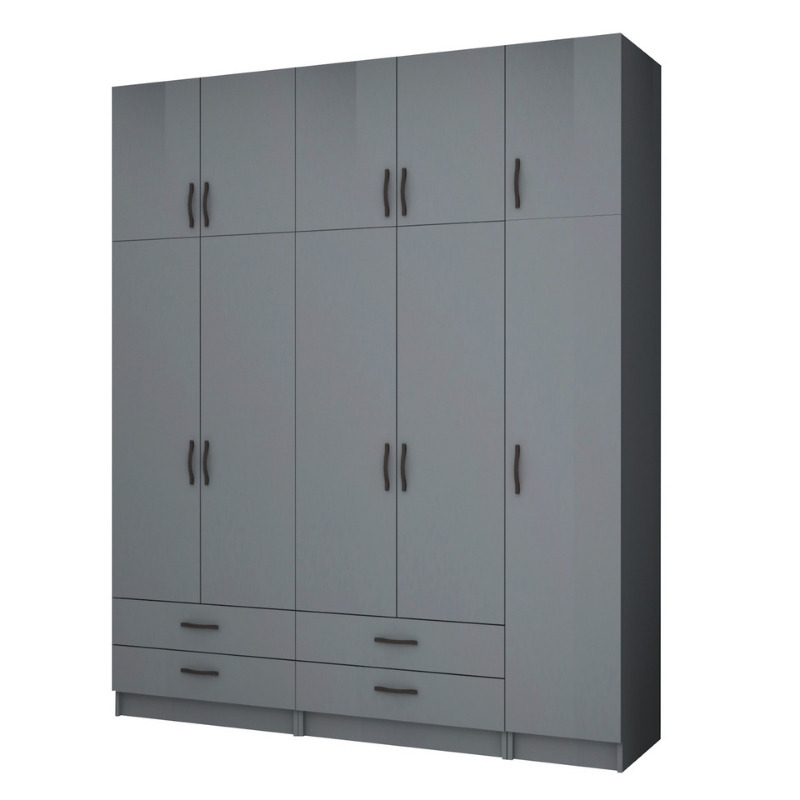 Ντουλάπα ρούχων Ricardo Megapap πεντάφυλλη με πατάρι και συρτάρια χρώμα ανθρακί 200×51,8×240εκ.