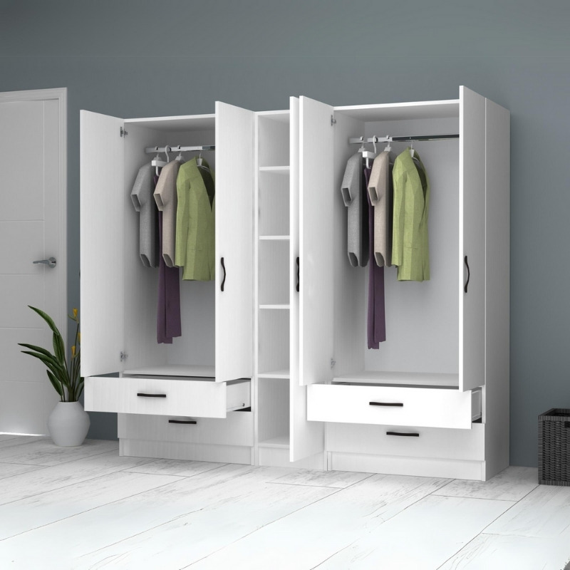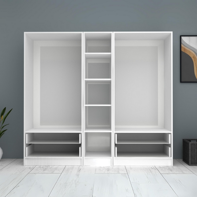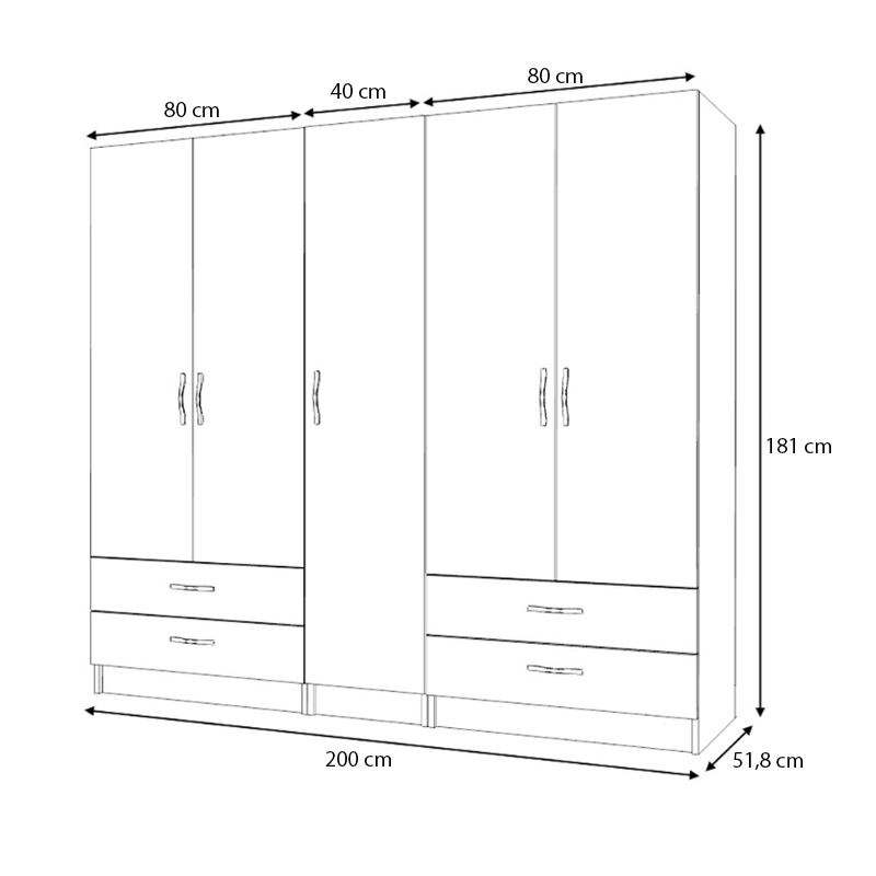 Ντουλάπα ρούχων Ricardo Megapap πεντάφυλλη με συρτάρια χρώμα λευκό 200×51,8×181εκ.