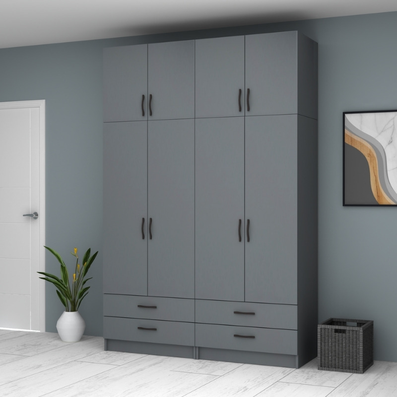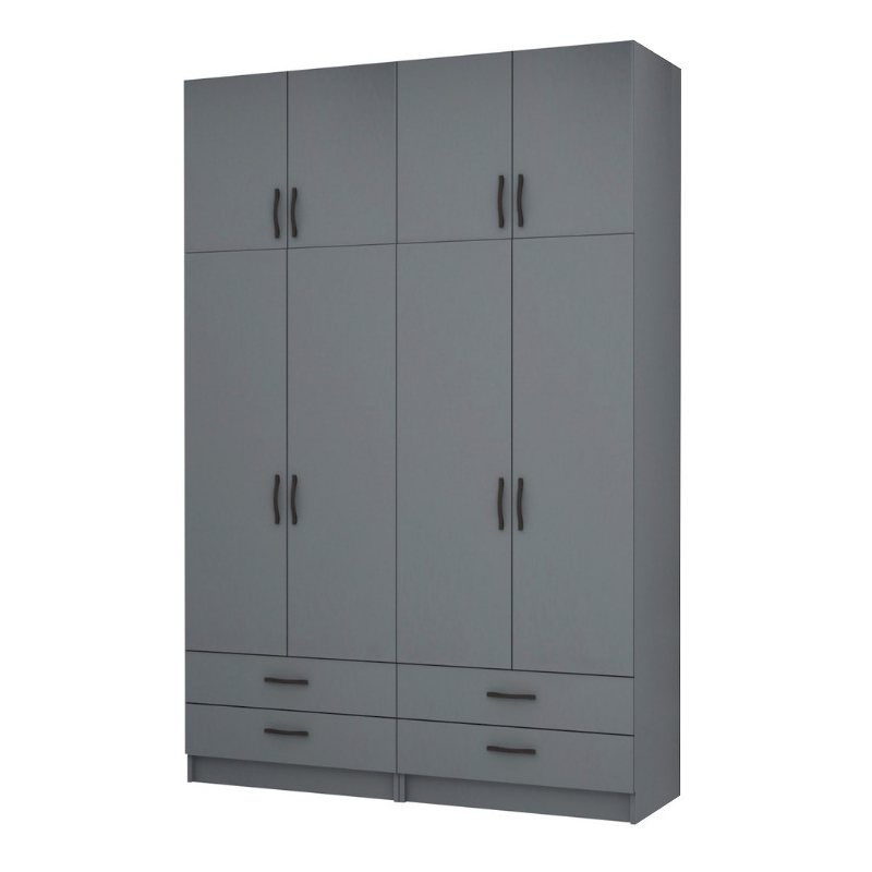 Ντουλάπα ρούχων Ricardo Megapap τετράφυλλη με πατάρι και συρτάρια χρώμα ανθρακί 160×51,8×240εκ.