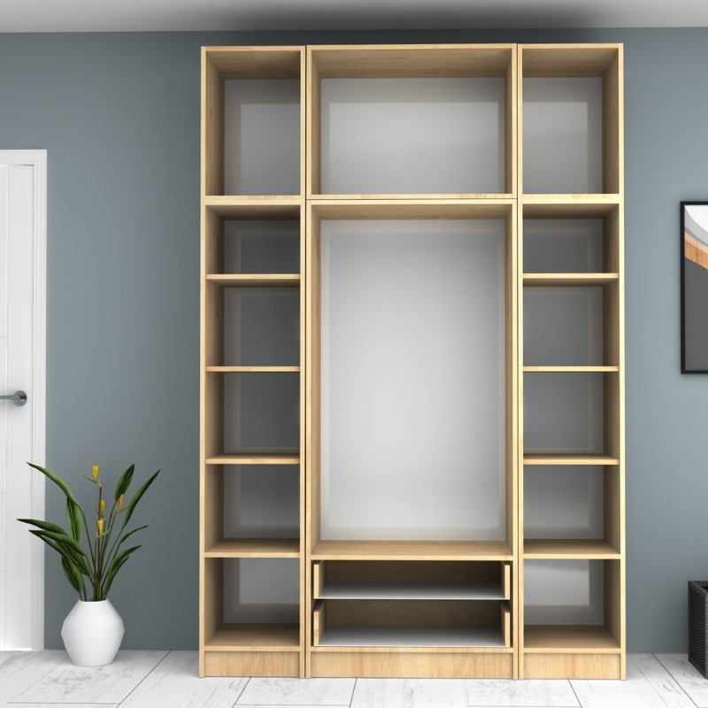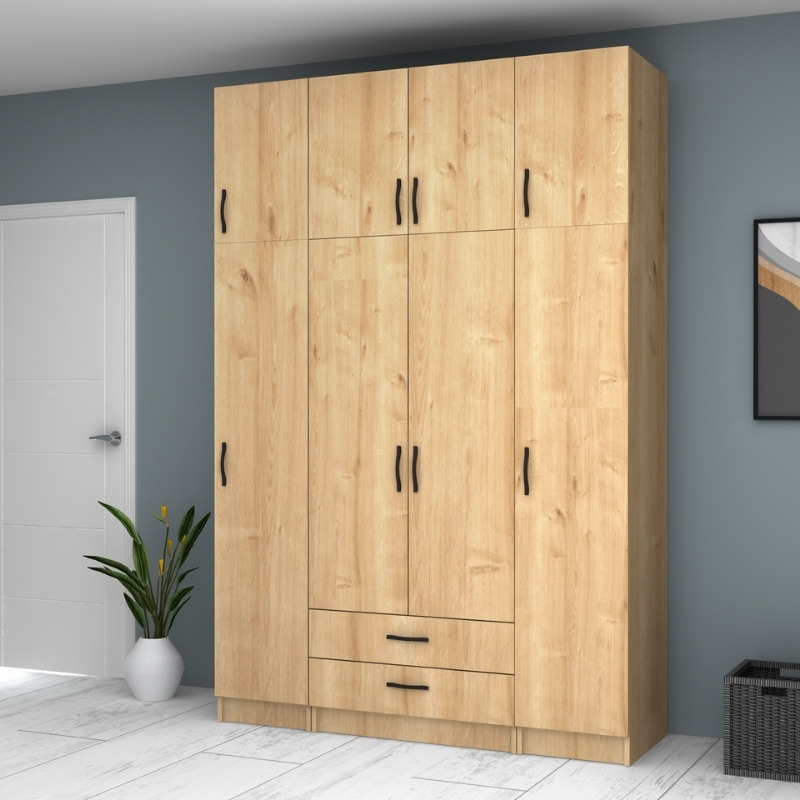 Ντουλάπα ρούχων Ricardo Megapap τετράφυλλη με πατάρι και συρτάρια χρώμα φυσικό οξιάς 160×51,8×240εκ.