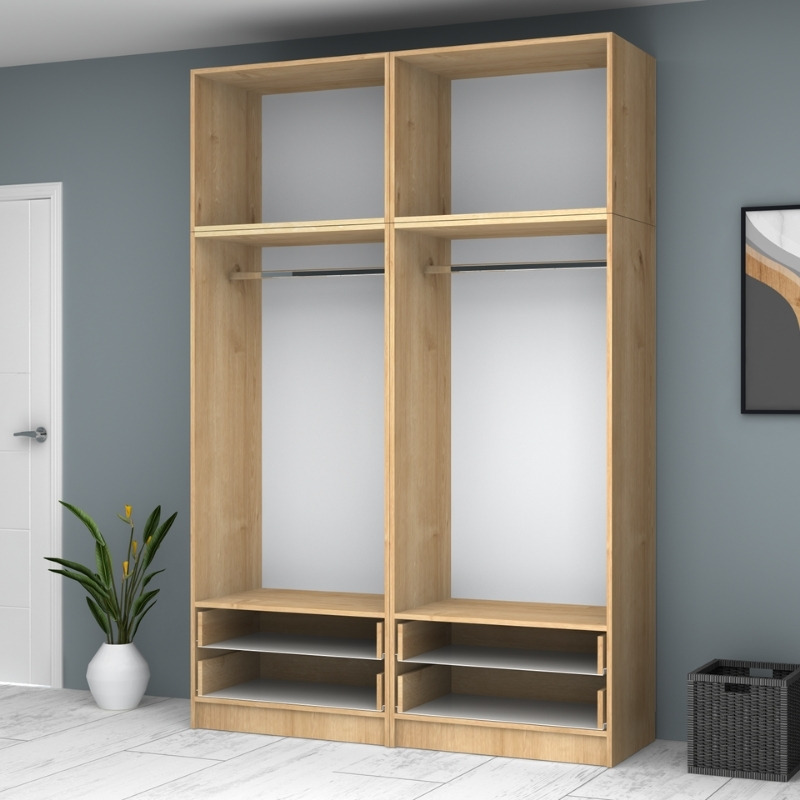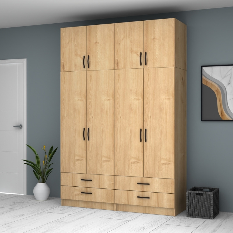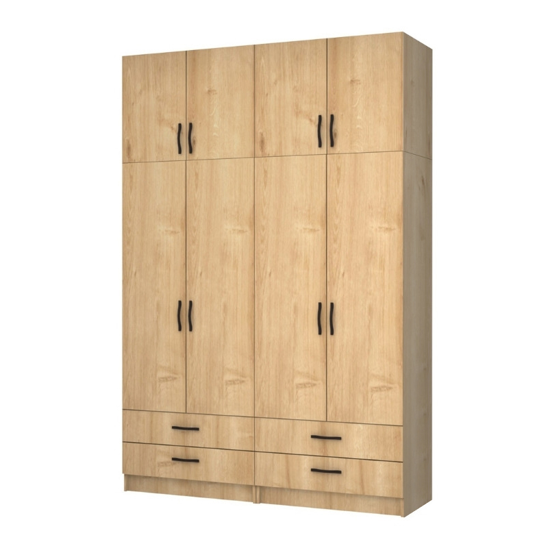 Ντουλάπα ρούχων Ricardo Megapap τετράφυλλη με πατάρι και συρτάρια χρώμα φυσικό οξιάς 160×51,8×240εκ.