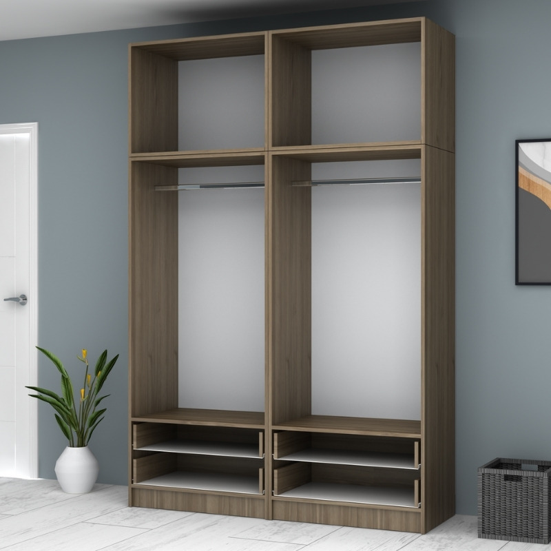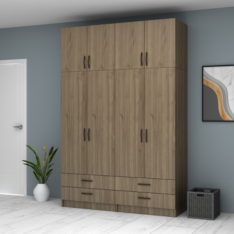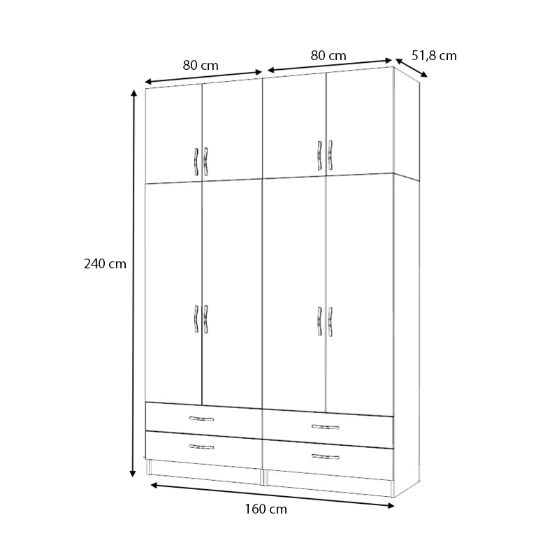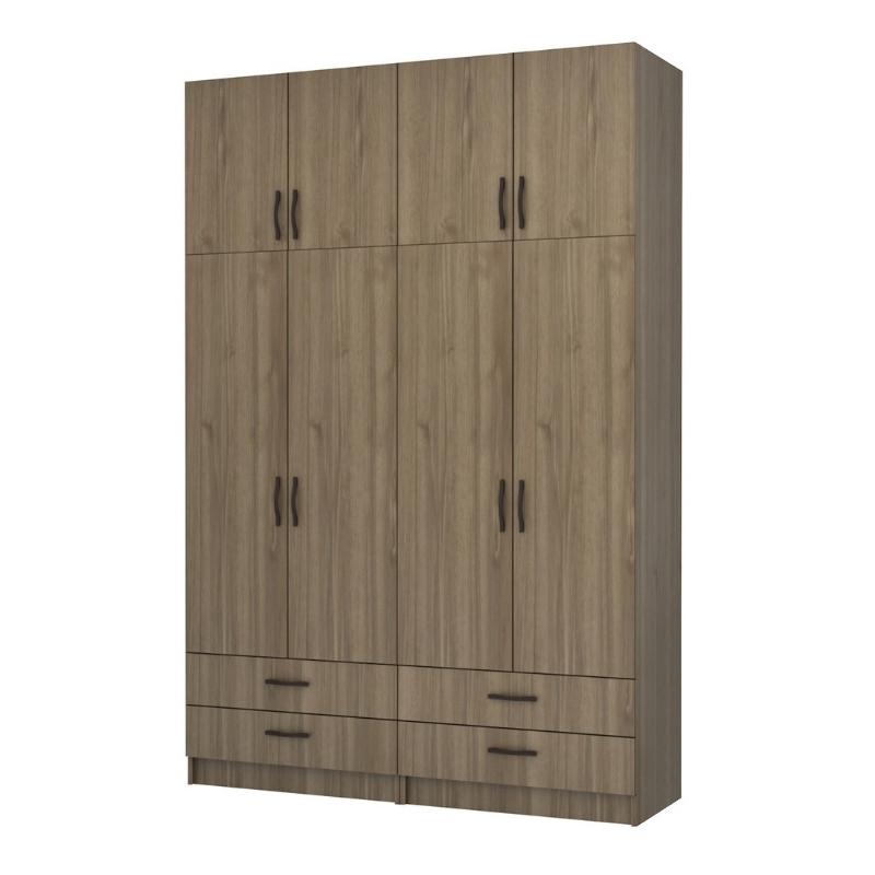 Ντουλάπα ρούχων Ricardo Megapap τετράφυλλη με πατάρι και συρτάρια χρώμα καρυδί 160×51,8×240εκ.