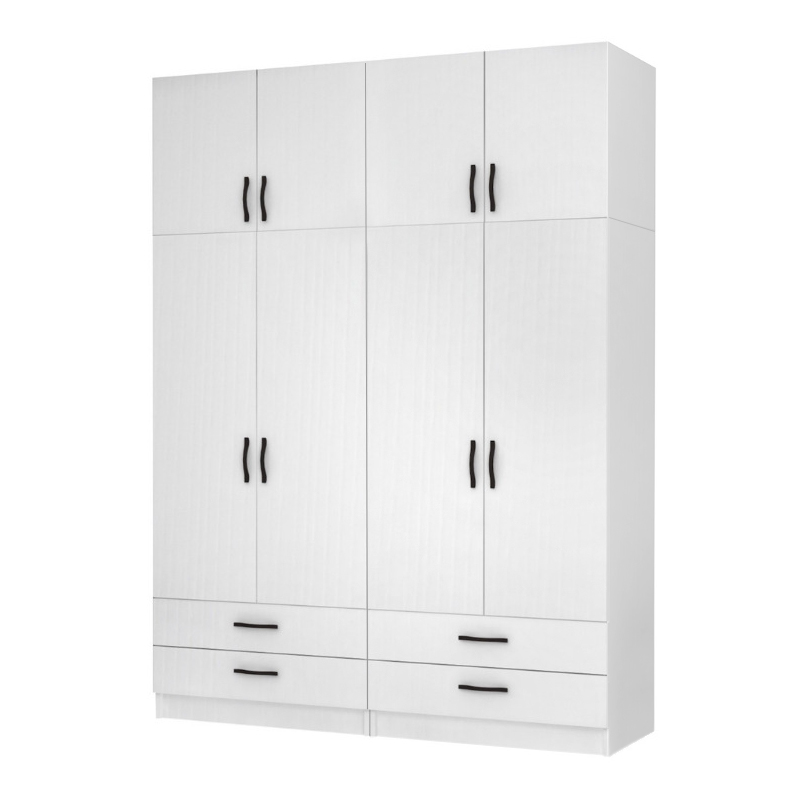 Ντουλάπα ρούχων Ricardo Megapap τετράφυλλη με πατάρι και συρτάρια χρώμα λευκό 160×51,8×240εκ.