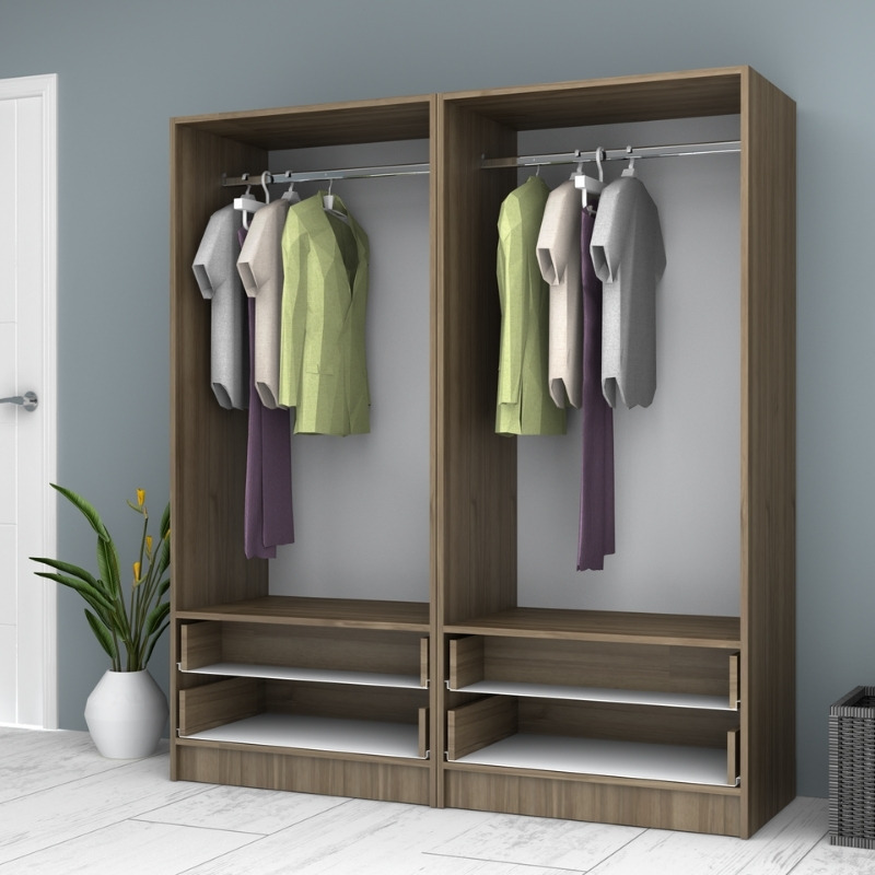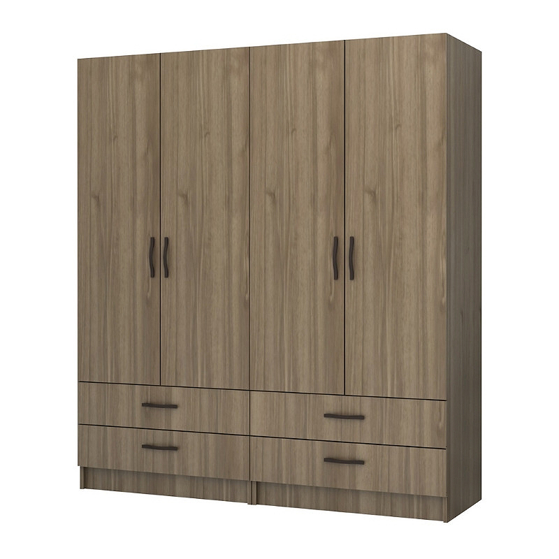 Ντουλάπα ρούχων Ricardo Megapap τετράφυλλη με συρτάρια χρώμα καρυδί 160×51,8×181εκ.