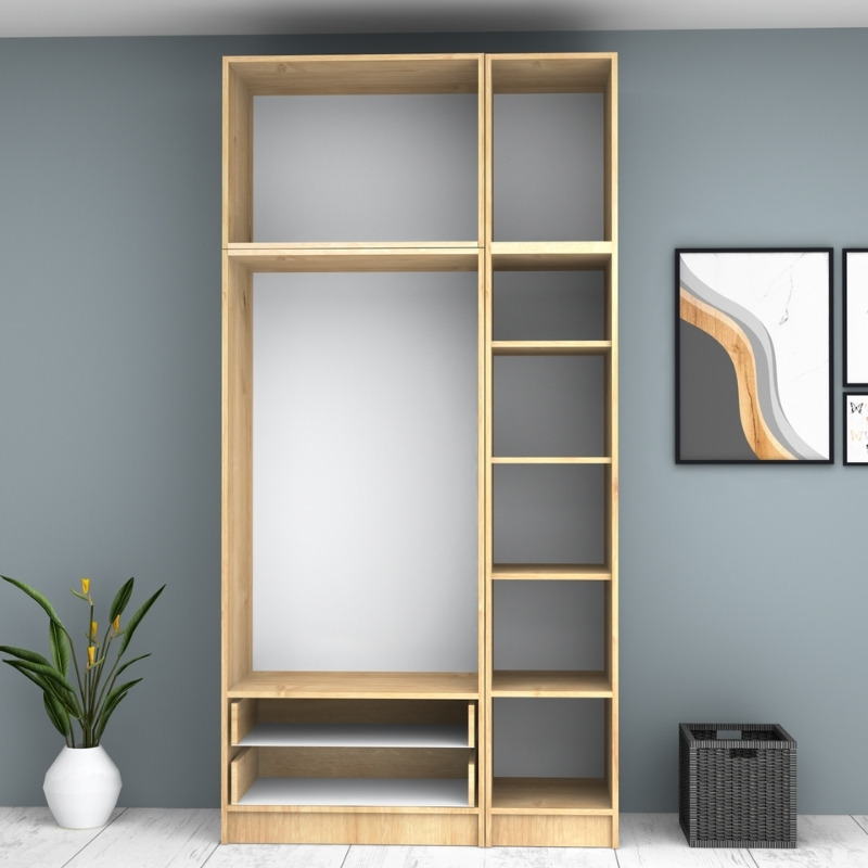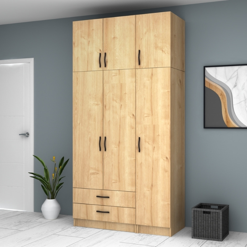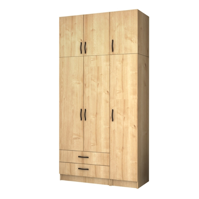 Ντουλάπα ρούχων Ricardo Megapap τρίφυλλη με πατάρι και συρτάρια χρώμα φυσικό οξιάς 120×51,8×240εκ.