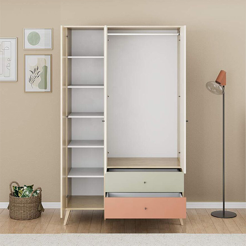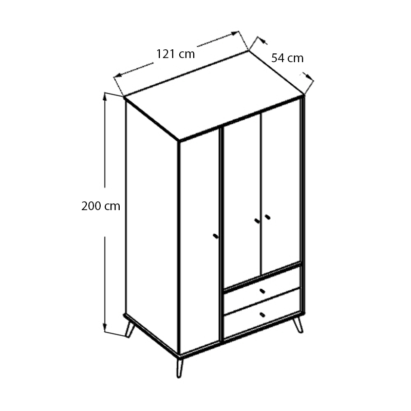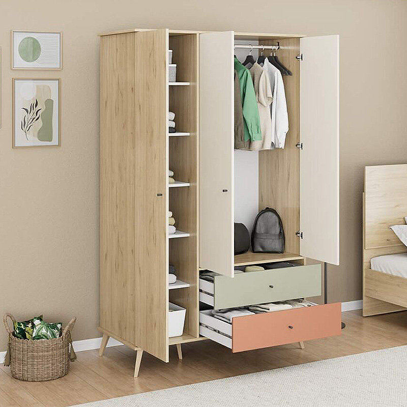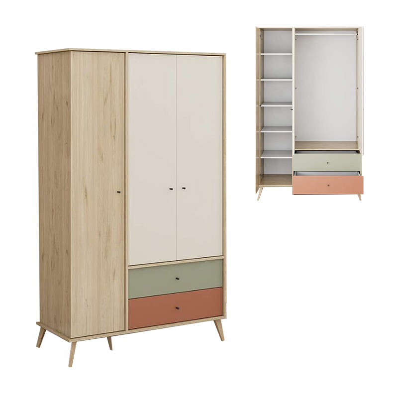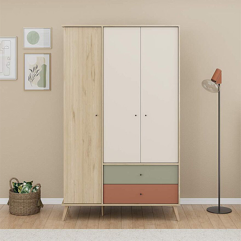 Ντουλάπα ρούχων Terra Megapap τρίφυλλη με συρτάρια χρώμα florida oak 121x54x200εκ.