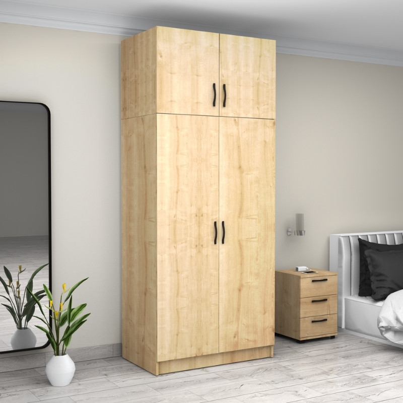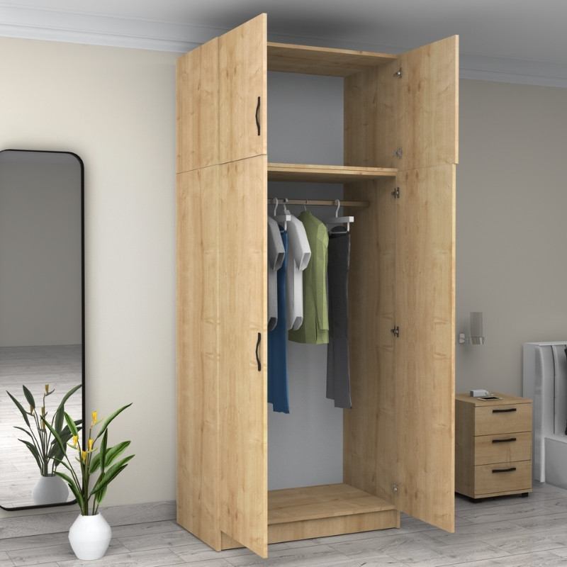 Ντουλάπα ρούχων Victoria Megapap δίφυλλη με πατάρι χρώμα φυσικό οξιάς 100x60x240εκ.