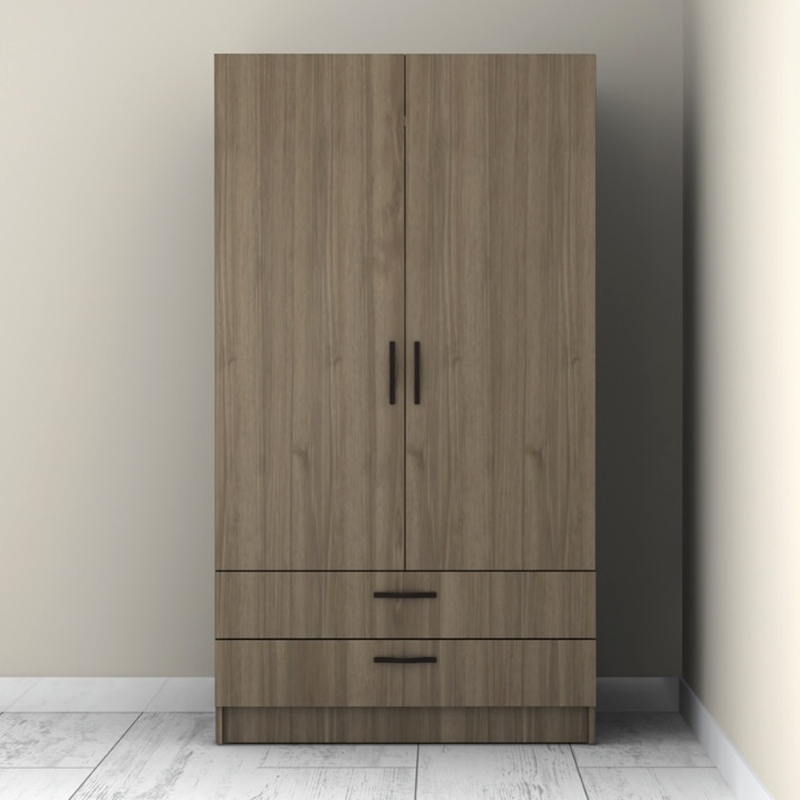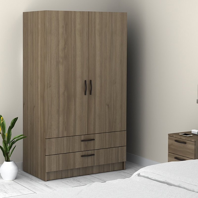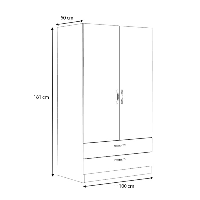 Ντουλάπα ρούχων Victoria Megapap δίφυλλη με συρτάρια χρώμα καρυδί 100x60x181εκ.