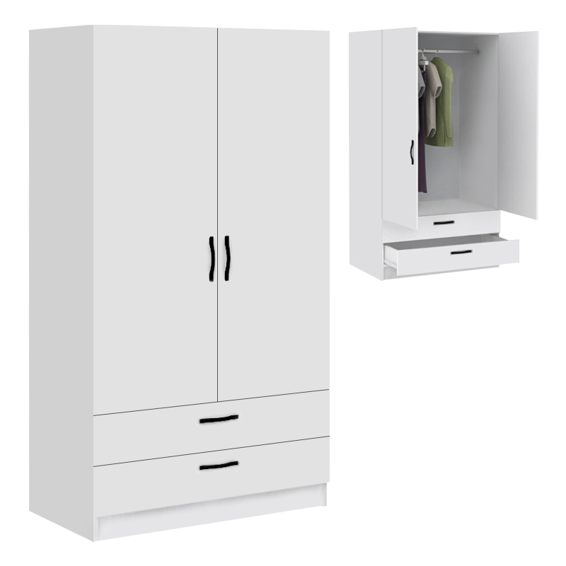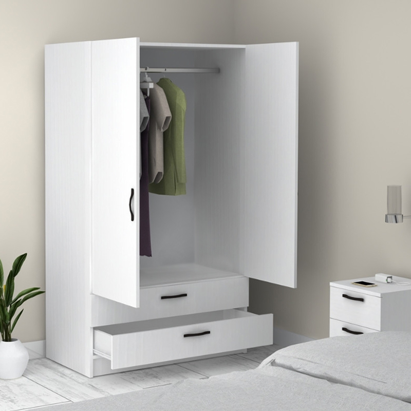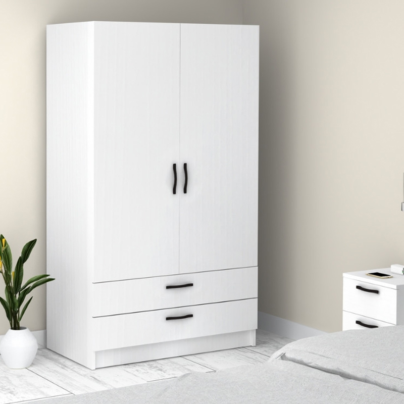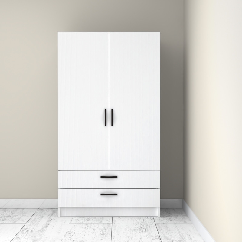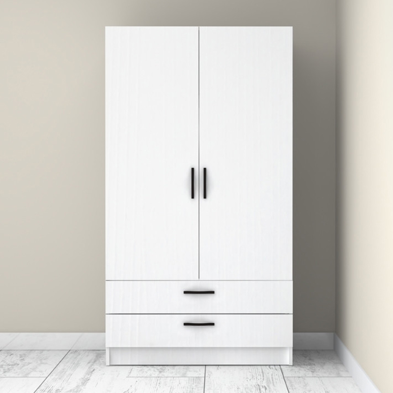 Ντουλάπα ρούχων Victoria Megapap δίφυλλη με συρτάρια χρώμα λευκό 100x60x181εκ.