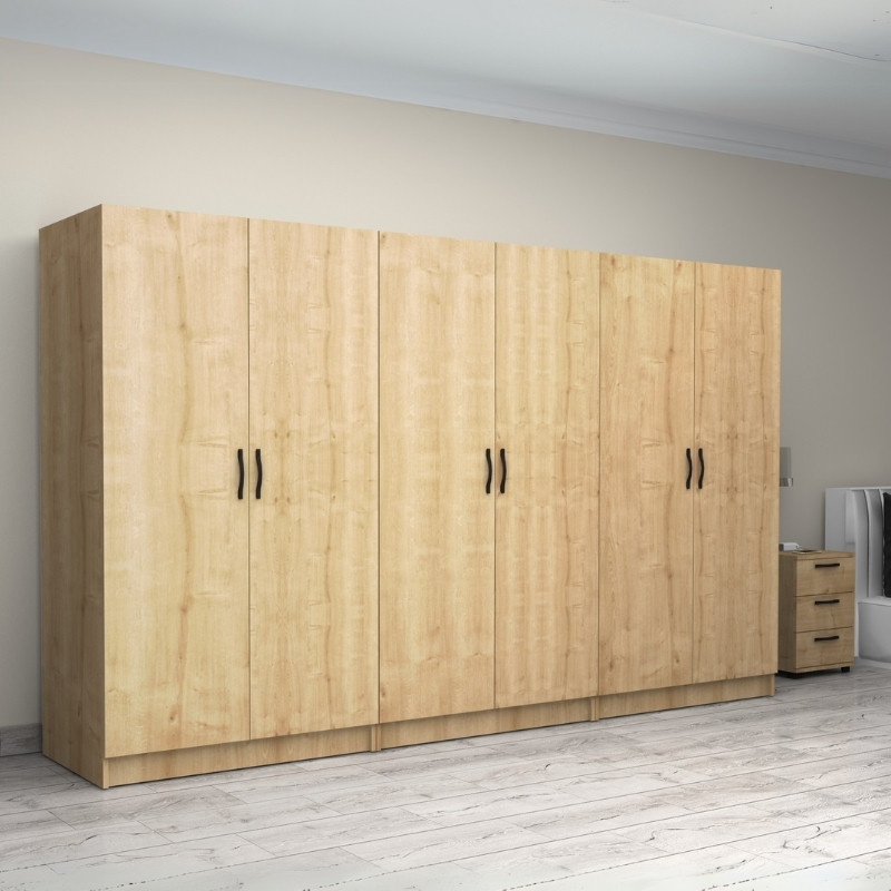 Ντουλάπα ρούχων Victoria Megapap εξάφυλλη χρώμα φυσικό οξιάς 300x60x181εκ.