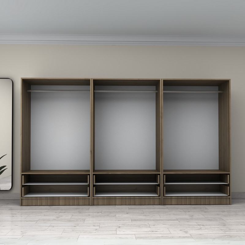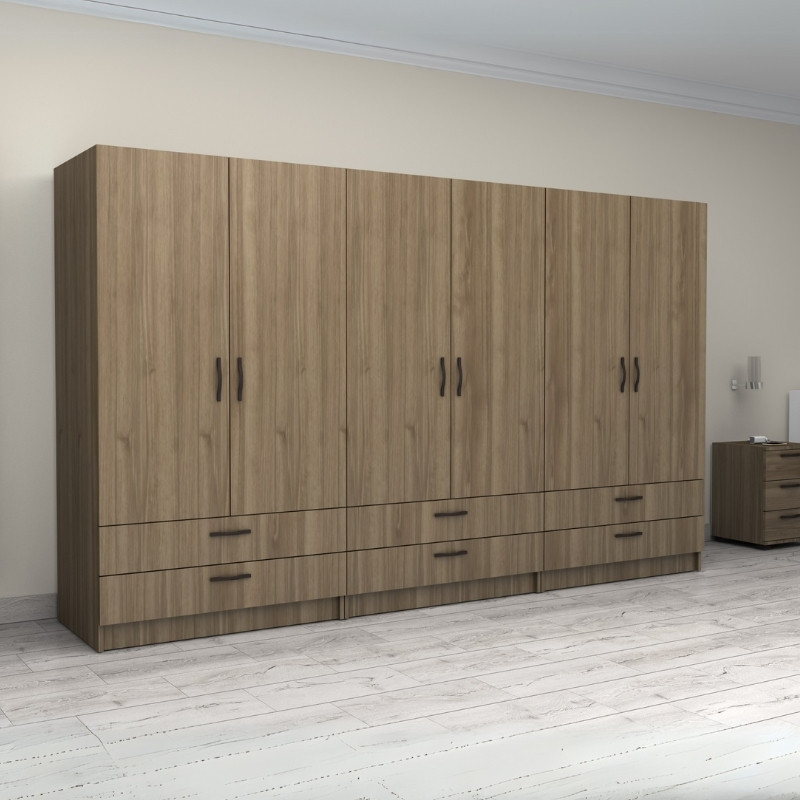 Ντουλάπα ρούχων Victoria Megapap εξάφυλλη με συρτάρια χρώμα καρυδί 300x60x181εκ.