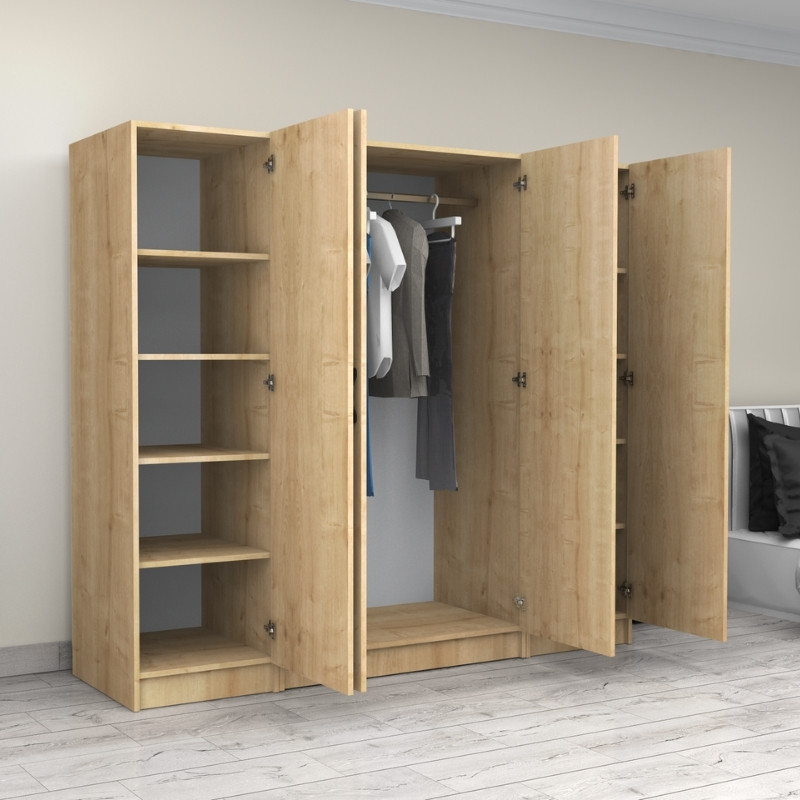 Ντουλάπα ρούχων Victoria Megapap τετράφυλλη χρώμα φυσικό οξιάς 200x60x181εκ.