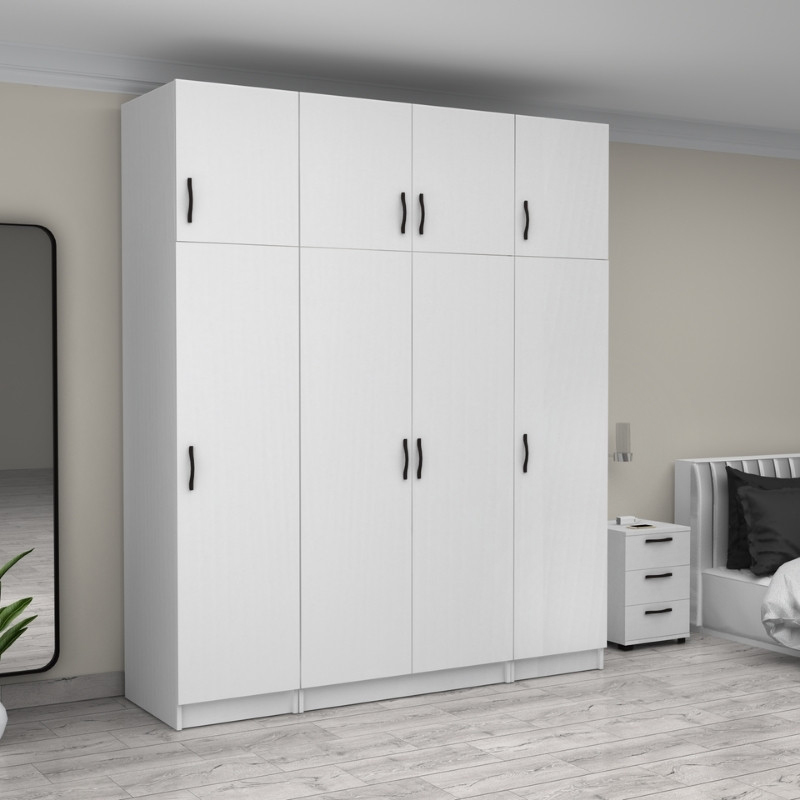 Ντουλάπα ρούχων Victoria Megapap τετράφυλλη με πατάρι χρώμα λευκό 200x60x240εκ.
