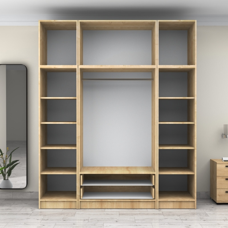 Ντουλάπα ρούχων Victoria Megapap τετράφυλλη με πατάρι και συρτάρια χρώμα φυσικό οξιάς 200x60x240εκ.