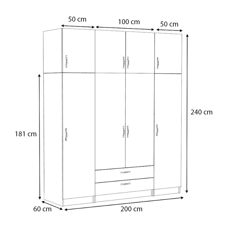 • Διαστάσεις ντουλάπας: Μήκος 100 x Βάθος 60 x Ύψος 240 εκ.