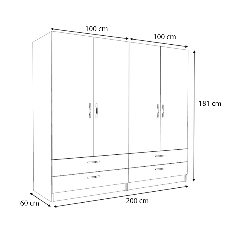 Ντουλάπα ρούχων Victoria Megapap τετράφυλλη με συρτάρια χρώμα φυσικό οξιάς 200x60x181εκ.