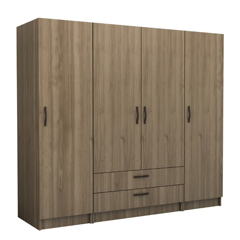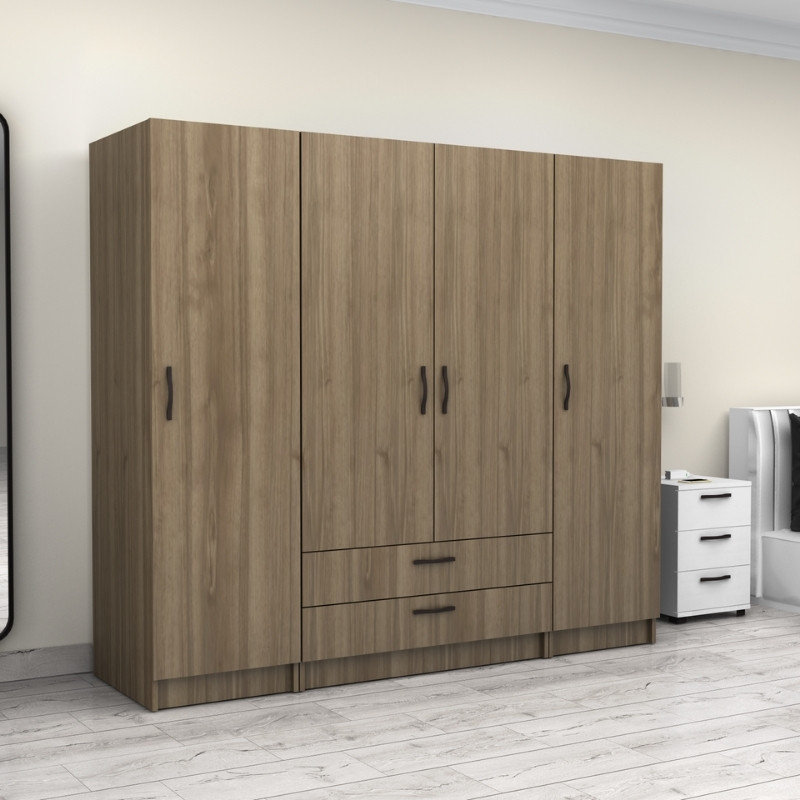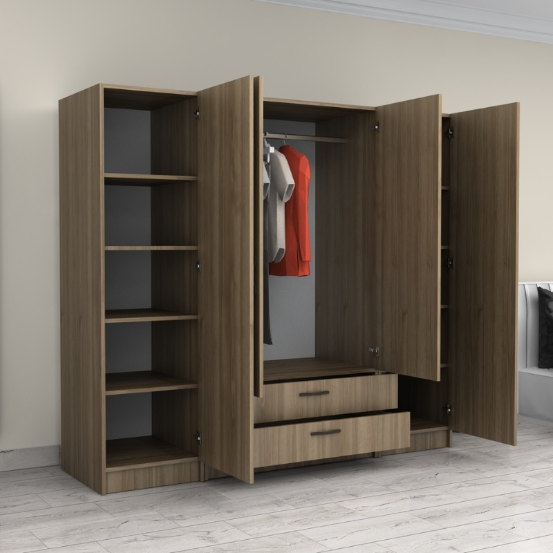 Ντουλάπα ρούχων Victoria Megapap τετράφυλλη με συρτάρια χρώμα καρυδί 200x60x181εκ. Ντουλάπα ρούχων Victoria Megap...