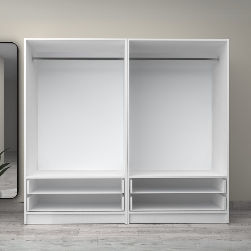 Ντουλάπα ρούχων Victoria Megapap τετράφυλλη με συρτάρια χρώμα λευκό 200x60x181εκ.