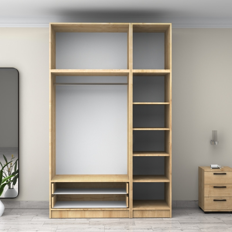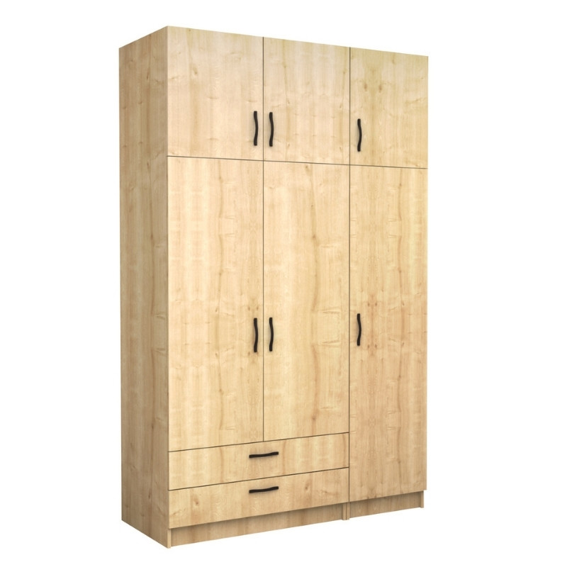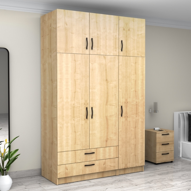 Ντουλάπα ρούχων Victoria Megapap τρίφυλλη με πατάρι και συρτάρια χρώμα φυσικό οξιάς 150x60x240εκ.