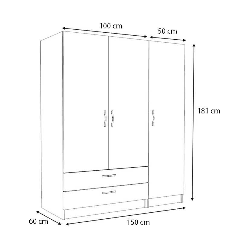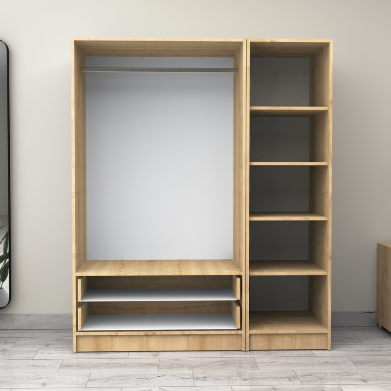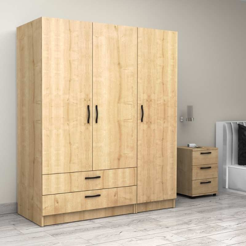 Ντουλάπα ρούχων Victoria Megapap τρίφυλλη με συρτάρια χρώμα φυσικό οξιάς 150x60x181εκ.