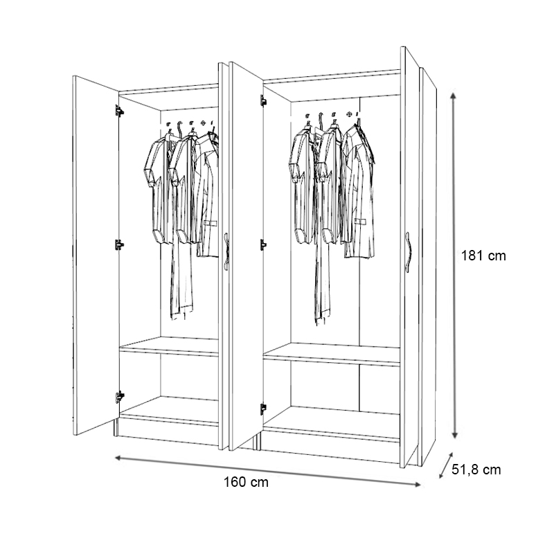 Ντουλάπα ρούχων Vivian Megapap τετράφυλλη χρώμα λευκό 160×51,8×181εκ.