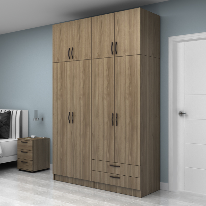 Ντουλάπα ρούχων Vivian Megapap τετράφυλλη με πατάρι και συρτάρια χρώμα καρυδί 160×51,8×240εκ.