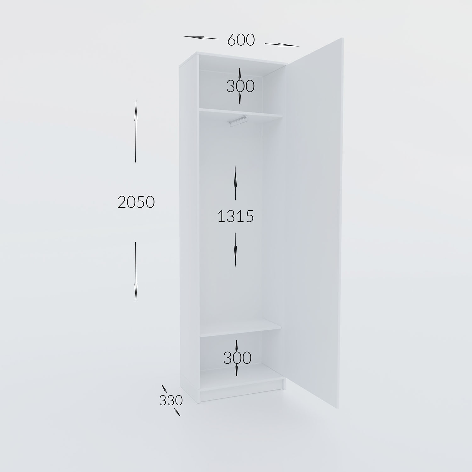 • Ένα ανοιγόμενο φύλλο, όπου εσωτερικά διαθέτει δύο ράφια, για την τοποθέτηση προσωπικών αντικειμένων, και μία ράγα για κρέμασμα.