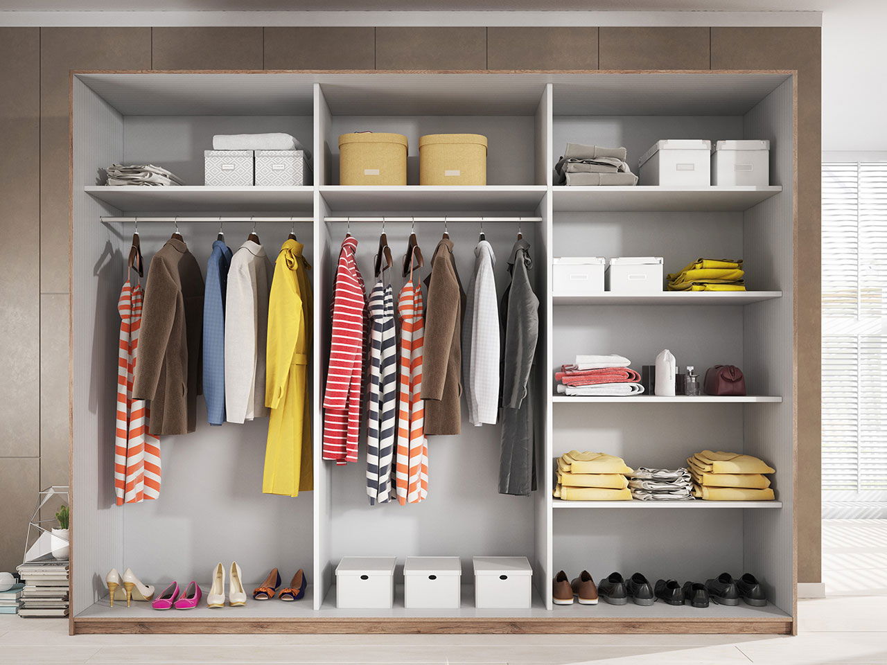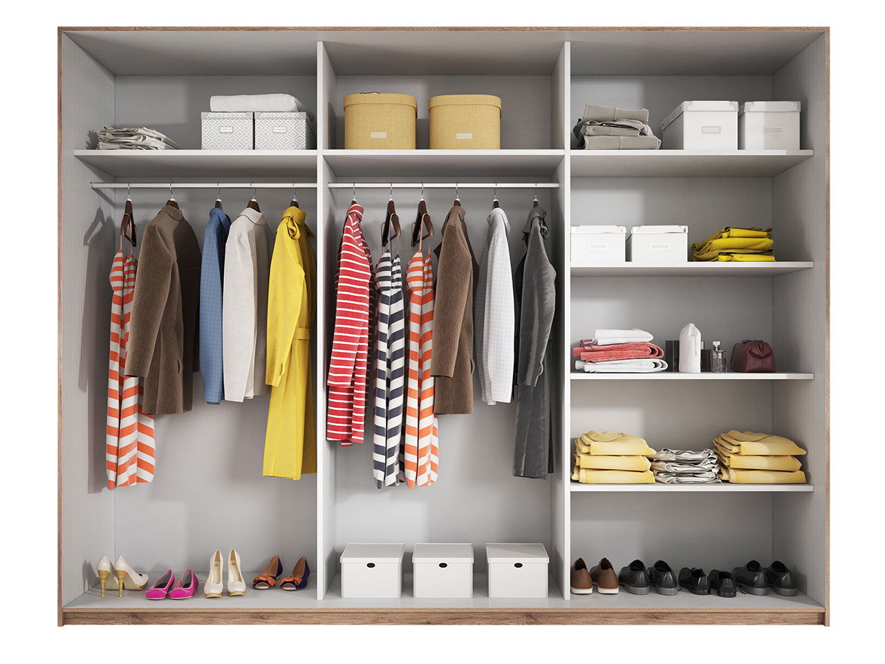 – Στην μεγαλύτερη διάσταση περιλαμβάνει 3 χώρους, 2 με κοντάρι για κρεμάστρες και 1 με ράφια