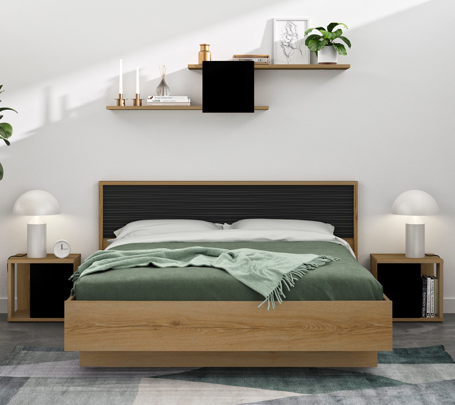 Otello κρεβάτι διπλό 180x93x204εκ. ( για στρώμα 160x200εκ.) Helvezia Oak / Μαύρο