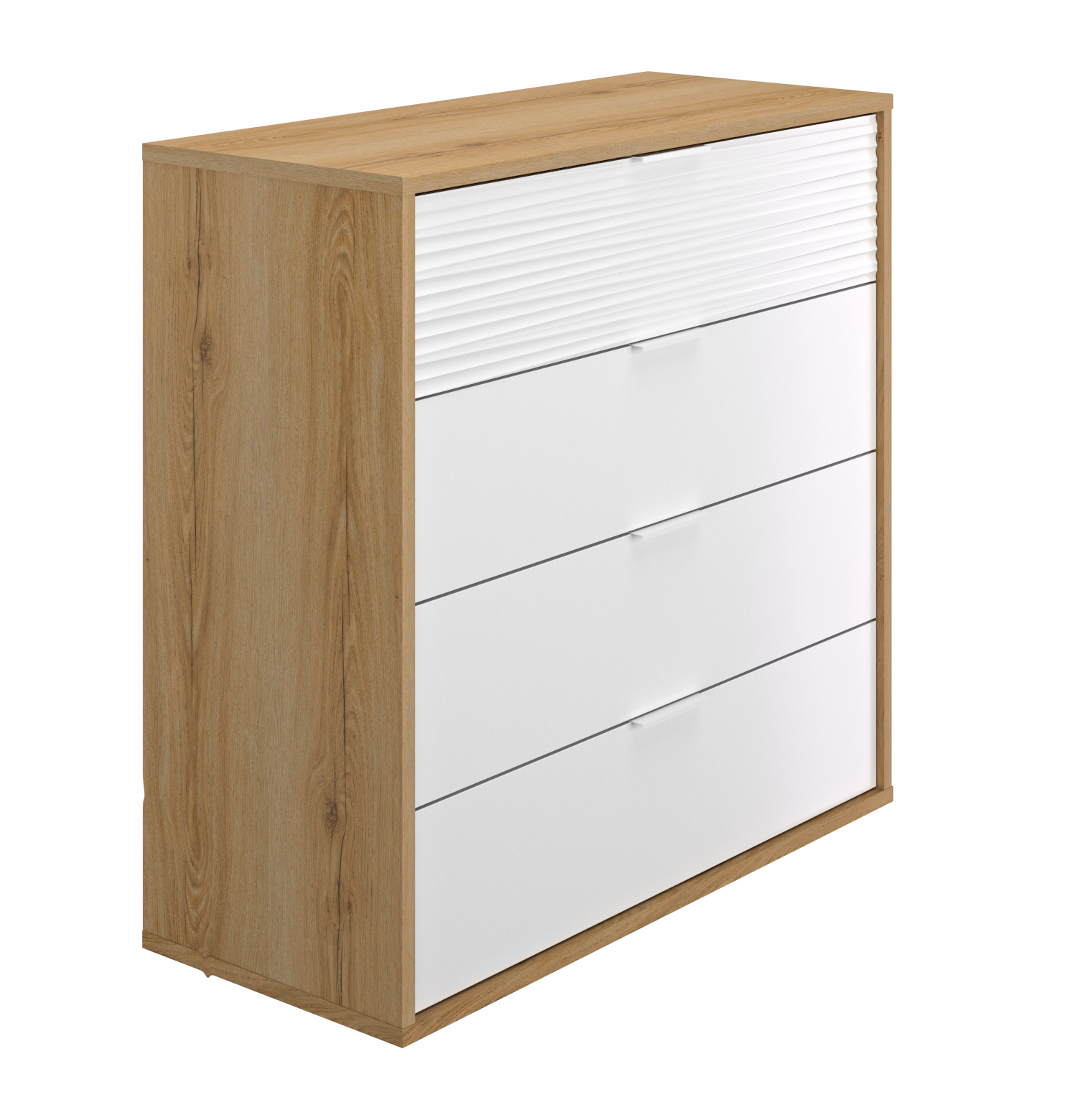 Η συρταριέρα Otello με το μοντέρνο σχέδιό της και την υψηλή ποιότητα κατασκευής θα σας ενθουσιάσει. Οι διαστάσεις της είναι 106×45εκ. ( ύψος 103εκ. ) και το χρώμα της ένας υπέροχος συνδυασμός Helvezia Oak με λευκό γυαλιστερό. Διαθέτει μηχανισμό soft close στα συρτάρια. Το πρώτο συρτάρι διαθέτει ανάγλυφες αυλακώσεις. Η συρταριέρα Otello κατασκευάζεται στη Γαλλία. Συνδυάστε την με τα υπόλοιπα έπιπλα της σειράς Otello.