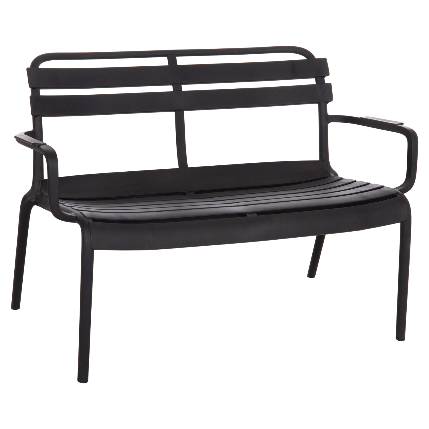 Το 2θέσιο παγκάκι εξωτερικού χώρου KORVER είναι εξολοκλήρου κατασκευασμένο από πολυπροπυλένιο σε ΜΑΥΡΟ χρώμα. Σχεδιαστικά, είναι λιτό με όμορφες καμπύλες, με πλάτη και μπράτσα, και μπορεί να χρησιμοποιηθεί με πολλούς τρόπους προσφέροντας μια πρακτική και ανθεκτική χρήση. Ιδανική πρόταση για χρήση σε εξωτερικούς χώρους, είτε επαγγελματικούς (χώροι δεξιώσεων, εταιρείες catering, κλπ.) είτε για το σπίτι.