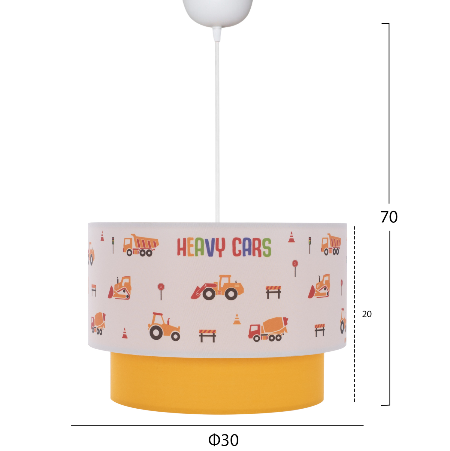 Η αισθητική υπεροχή αυτού του φωτιστικού με την λευκή-κίτρινη διχρωμία, θα το κάνει να ξεχωρίζει στον χώρο σας γιατί έχει μια απλοϊκή αλλά παιχνιδιάρικη εμφάνιση. Τα παιδιά θα λατρέψουν να το βλέπουν και δεν θα ξεκολλάνε τα μάτια τους από πάνω του. Το αποτέλεσμα είναι εξαιρετικά κομψό σε εμφάνιση. Καταφέρνει να συνδυάσει μια ελκυστική και μοντέρνα γοητεία με το ιδανικό μέγεθος, προσθέτοντας έτσι μια όμορφη διακόσμηση στην οροφή σας. Το ρυθμιζόμενο ύψος του μπορεί να προσφέρει διαφορετικά επίπεδα φωτεινότητας και οπτικής απόλαυσης. Το παιδικό δωμάτιο θα γίνει το αγαπημένο μέρος του παιδιού σας.