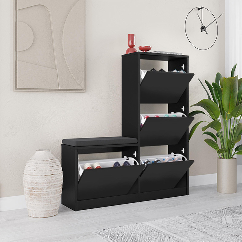 Παπουτσοθήκη μελαμίνης Dude Megapap χρώμα μαύρο 104,8x26x118,5εκ.