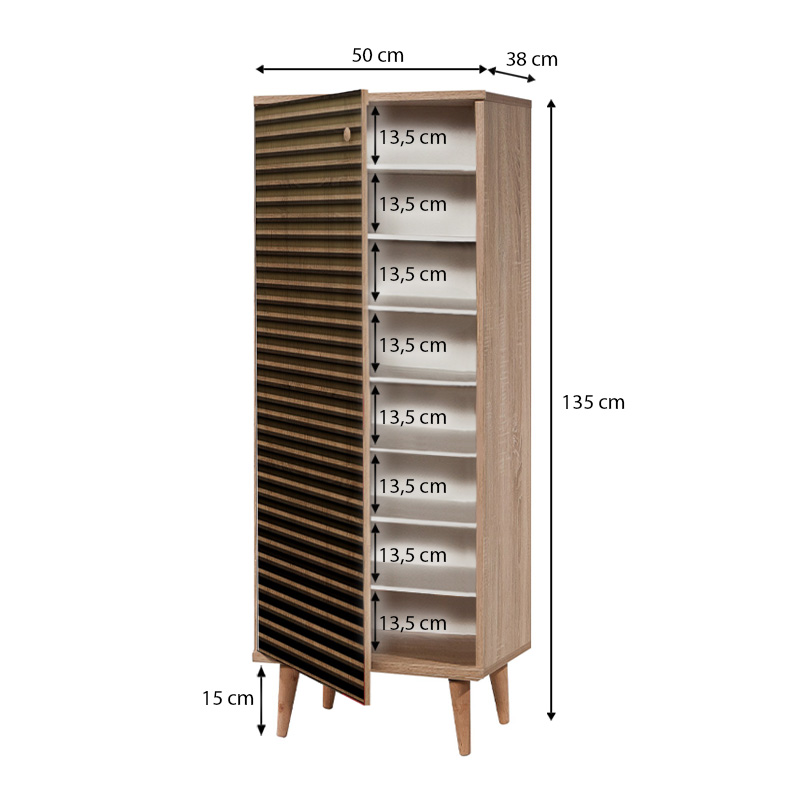 Παπουτσοθήκη – ντουλάπι Soho Megapap από μελαμίνη χρώμα sonoma 50x38x135εκ.