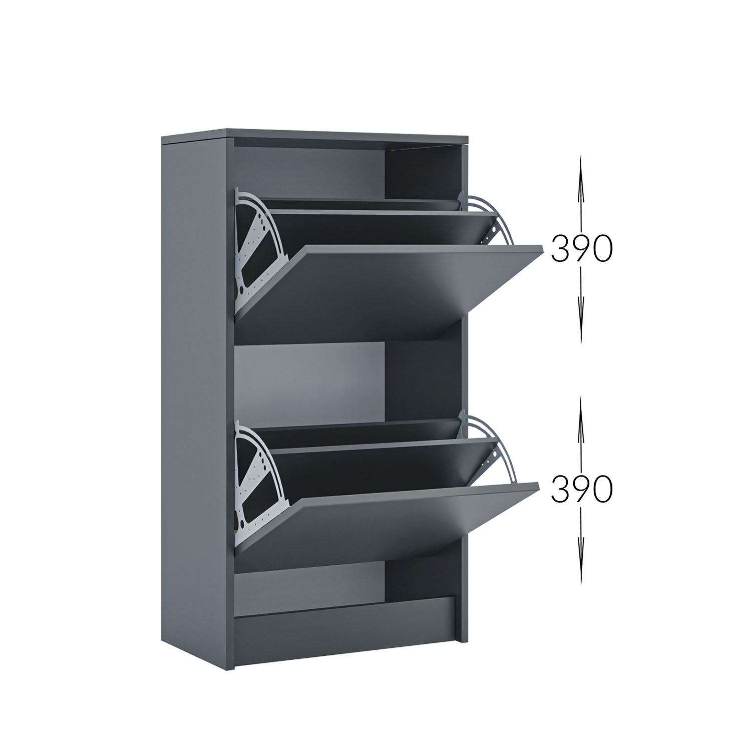 • Δύο ευρύχωρα ντουλάπια, με ένα ράφι εσωτερικά, για την τοποθέτηση των υποδημάτων, με ανακλινόμενη θέση
