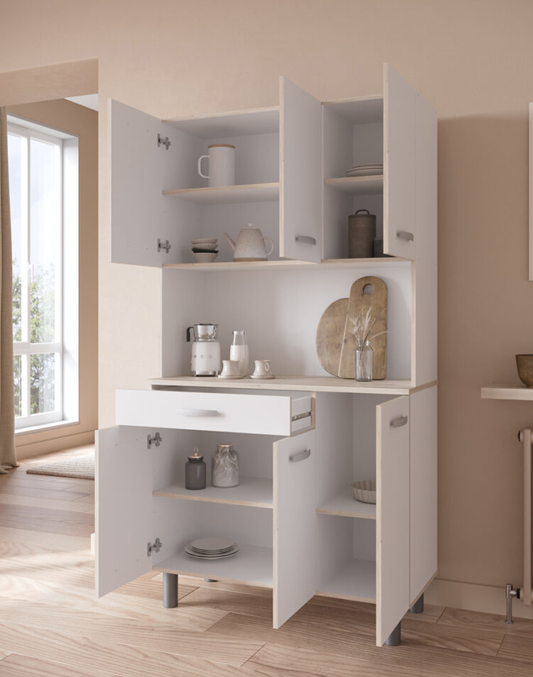 Ο Pasta μπουφές για κουζίνα είναι μοντέρνος και πρακτικος. Οι διαστάσεις του είναι 101×43εκ. ( ύψος 185εκ. ) και το χρώμα του λευκό με acacia. Διαθέτει 6 ντουλάπια και 1 συρτάρι. Ο μπουφές για κουζίνα Pasta κατασκευάζεται στη Γαλλία.