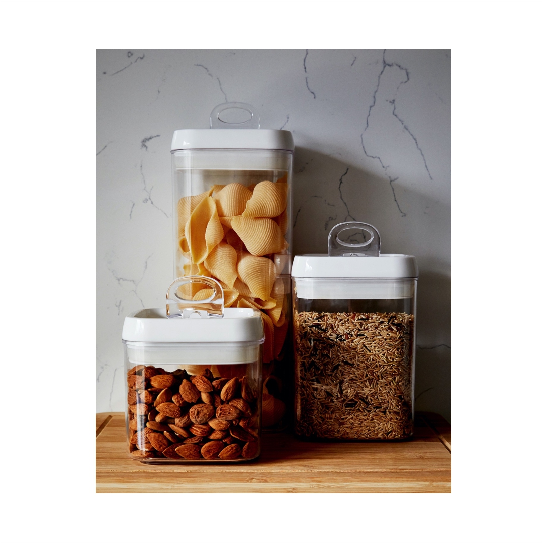 Πλαστικό δοχείο αποθήκευσης τροφίμων. Διαθέτει αεροστεγές κλείσιμο. Χωρητικότητα 300ml. Διαστάσεις 7x7x10cm. Ιδανικό για την κουζίνα σας.
