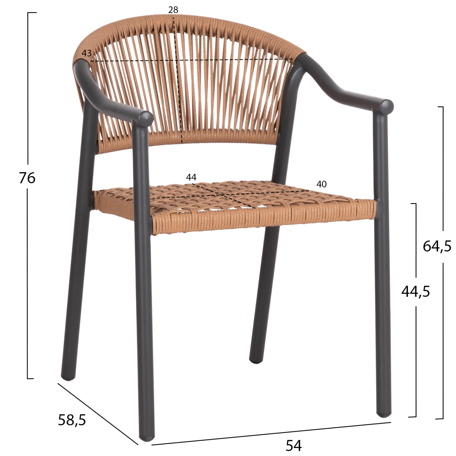Η πολυθρόνα είναι επενδυμένη με πολυεστερικό RATTAN σε «τυλιχτή» μορφή (twisted) που μοιάζει με σχοινί.