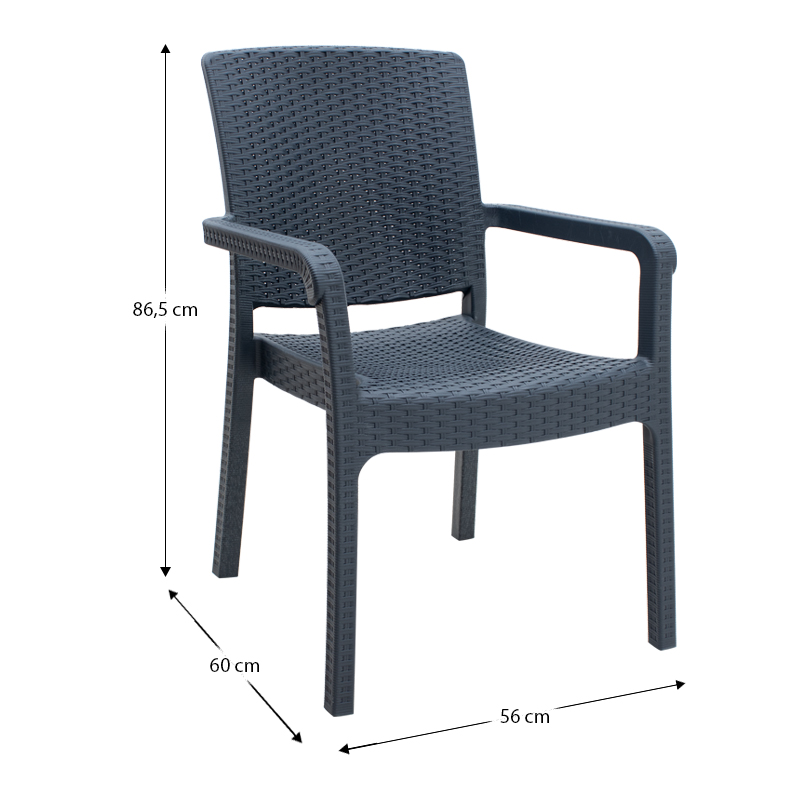 Πολυθρόνα κήπου πολυπροπυλενίου με πλέξη ραττάν χρώμα γκρι 56x60x86,5εκ.