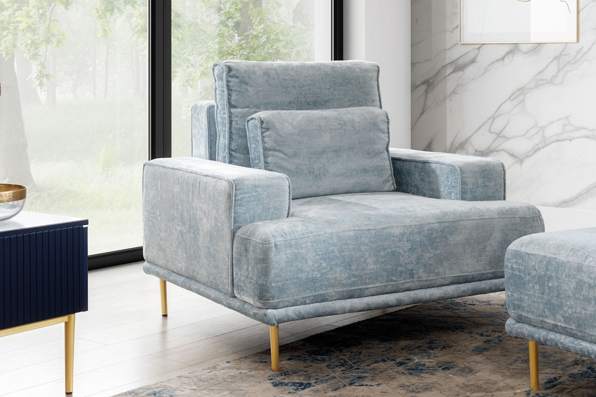 Πολυθρόνα Niki Μπλε Ανοιχτό + Χρυσά Πόδια 105x93x99cm - BOG4589 Πολυθρόνα Niki Μπλε Ανοιχτό + ...