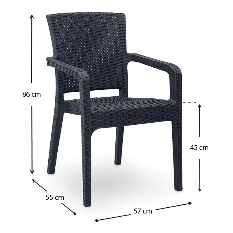 Η πολυθρόνα πολυπροπυλενίου Clio είναι κατασκευασμένη από ανακυκλώσιμο υλικό σε ανθρακί απόχρωση. Ιδανική επιλογή για το μπαλκόνι, τον κήπο σας ή και για επαγγελματική χρήση.