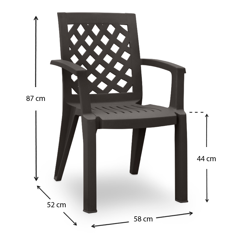 Η πολυθρόνα πολυπροπυλενίου Kira είναι κατασκευασμένη από πολυπροπυλένιο σε καφέ απόχρωση. Ιδανική επιλογή για το μπαλκόνι, τον κήπο σας ή και για επαγγελματική χρήση.