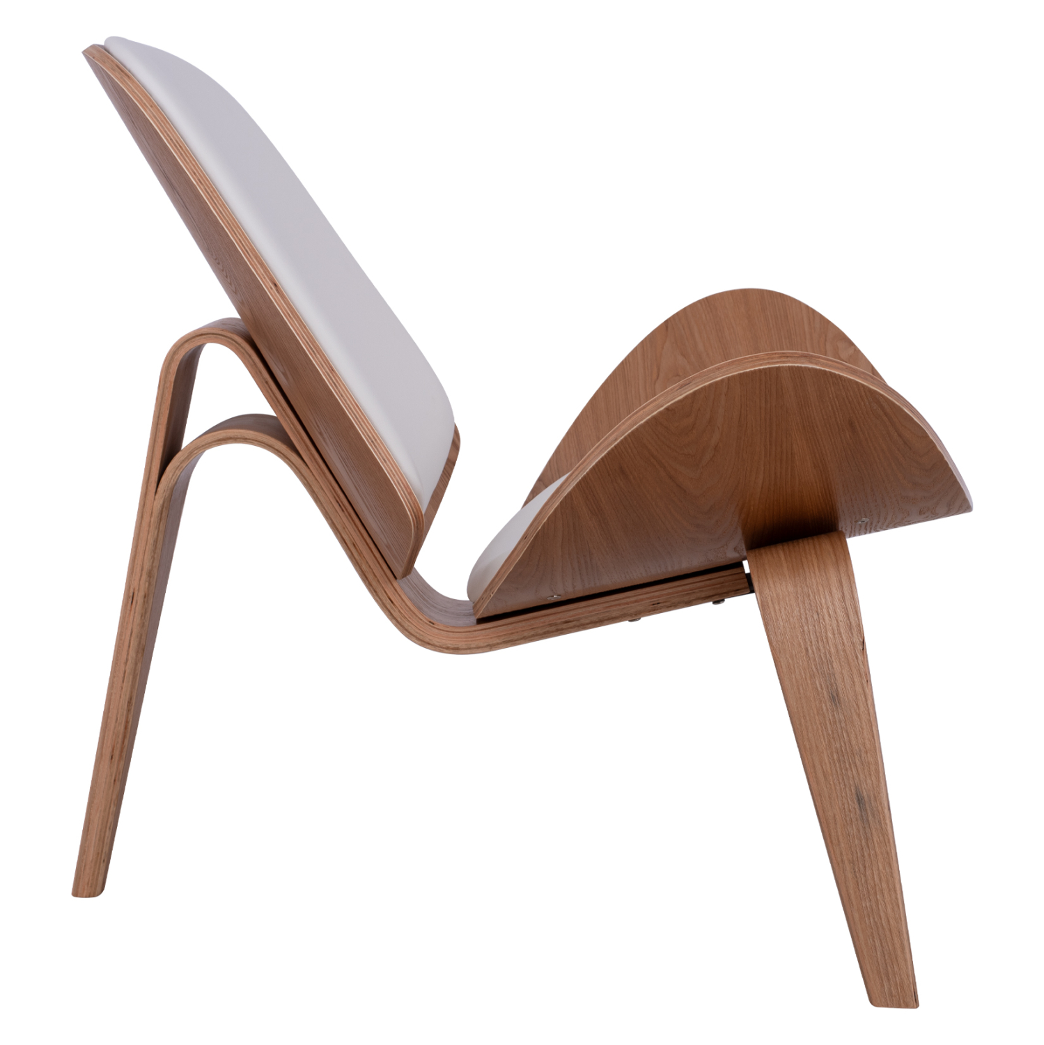 Η πολυθρόνα έχει ξύλινο σκελετό σε φυσική απόχρωση ξύλου, ενώ τα μαξιλαράκια σε πλάτη και κάθισμα είναι επενδυμένα με PU leather. To PU είναι συνθετικό δέρμα και έχει υφή λινού υφάσματος. Το συνθετικό δέρμα είναι η εξέλιξη της δερματίνης αλλά με κύριο χαρακτηριστικό ότι δεν ξεχωρίζει εύκολα στο μάτι από το αληθινό δέρμα. Η σύνθεσή του είναι κατά βάση η πολυουρεθάνη και μικρο-ίνες πολυαμιδίου σε αντίθεση με την δερματίνη που περιέχει κατά βάση PVC.